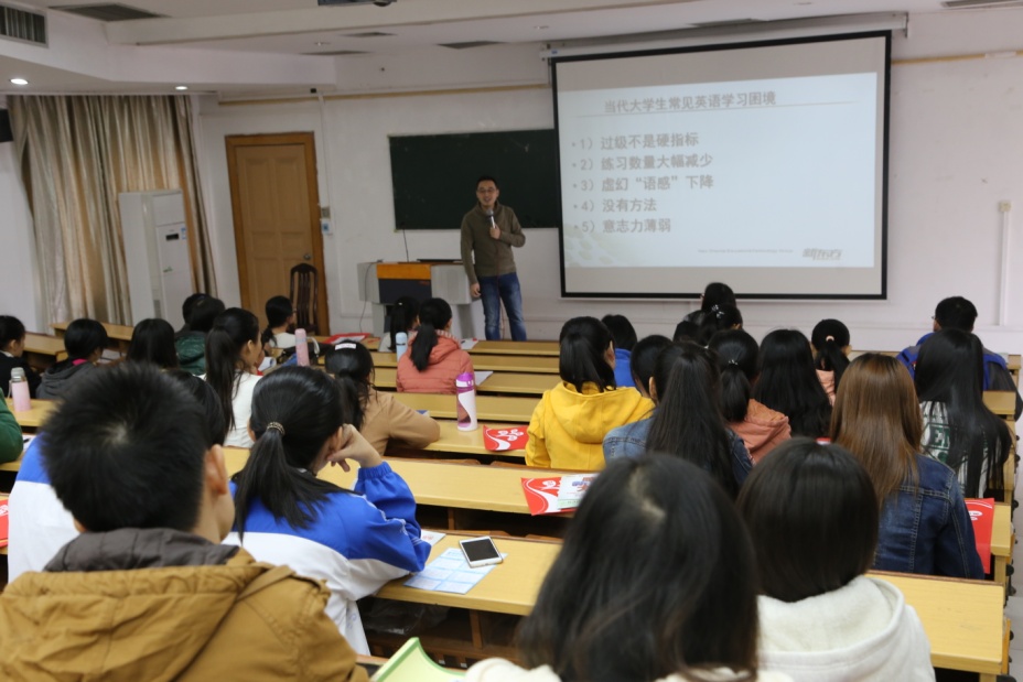 本次讲座不仅使学生们了解四、六级考试的具体形式流程、方法技巧和解题策略。还让学生们意识到应有针对性的投入到英语学习中去,同时也增强了学习英语的信心。