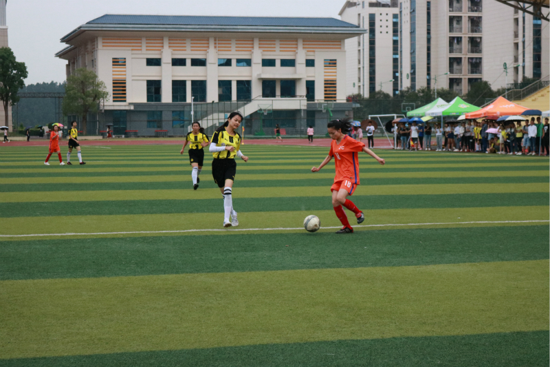 5月18日下午五点十五分,基础医学院女足与护理学院女足在仙葫校区足球场进行了一场精彩的足球比赛。