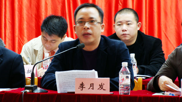 随后,学校团委李月发书记在会上作了讲话,学校学生会代表王伟同学宣读了校学生会致本次大会的贺辞。
