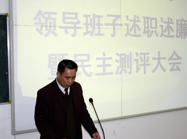 2009年12月24日下午,基础医学院处级领导干部述职述廉大会在西梯一教室举行,校党委组织部唐友明副部长、人事处陈昶科长莅临指导,基础医学院全体教职工参会。