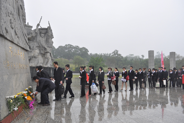 4月18日上午,赛恩斯新医药学院党总支书记徐方明、副书记梁天坚带领全院教职工党员、第三、四、五党支部学生党员、分团委及学生会委员,冒着朦朦细雨,怀着对革命先烈崇高的敬意来到广西烈士陵园,深切缅怀革命先烈。