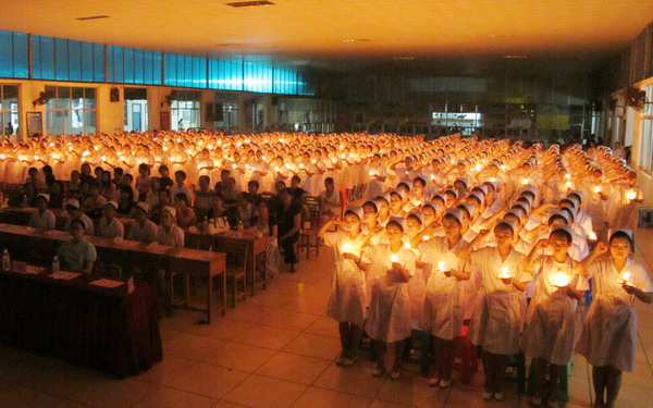 接着, 77岁高龄的护理前辈莫丽英点燃象征“燃烧自己,照亮别人”的第一根红烛,传递给每一位即将下临床的护理学生。一袭袭飘然的白衣,一顶顶洁白的燕帽,一支支燃烧的红烛……一切显得那么庄严神圣,护生们举起右手庄严宣誓“努力学习,热爱护理工作;钻研业务,努力攀登护理事业的高峰;用美好的心灵和精湛的技术,呵护每一位病人,使患者生命延续,健康重现,幸福永驻。”一句句掷地有声的誓言,使授帽传光显得庄重神圣。参加仪式的护生,净化了心灵,陶冶了情操,坚定了专业选择方向,激发了学习护理知识和技能的热情,取得了理想的效果。南丁格尔的精神在此传承。