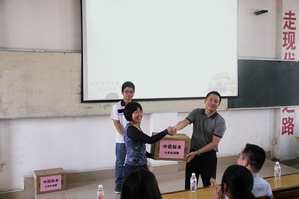 4月18日是下午,大参林连锁药店有限公司在我院东梯四教室举行中药标本捐赠仪式。广东大参林连锁药店有限公司人力资源部文剑总监、广西分公司陈洪总经理、薪酬部谭伟红经理、高等职业技术学院邓远美院长以及“大参林”订单班全体学生出席、参加了本次仪式。