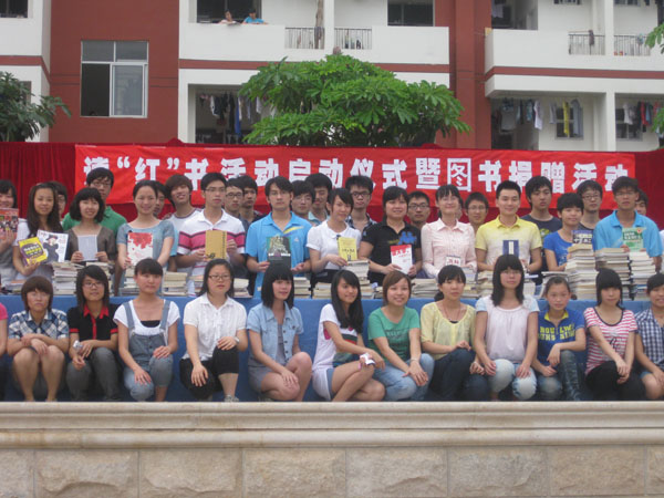 根据《读红色经典 树理想信念——第二届广西高校全民读书活动方案》(桂党高工宣〔2011〕22号)的文件精神,5月12日下午,赛恩斯新医药学院读“红”书活动启动仪式暨图书捐赠仪式在篮球场举行。赛恩斯新医药学院学生管理科副主任王海婴老师、团委副书记肖苗老师以及学工部全体老师参加。