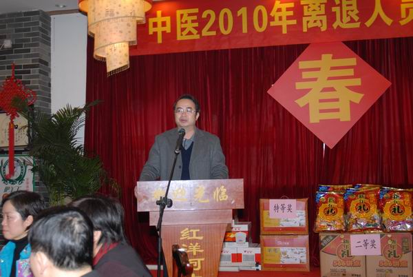 在一年一度的新春佳节到来之际,一附院于2010年1月27日下午在红洋河酒店举行全院离退休职工迎春团拜会,学院离退处领导、医院党政领导与300多位老同志欢聚一堂,回眸过去,共谋发展。