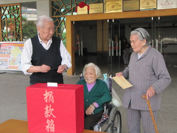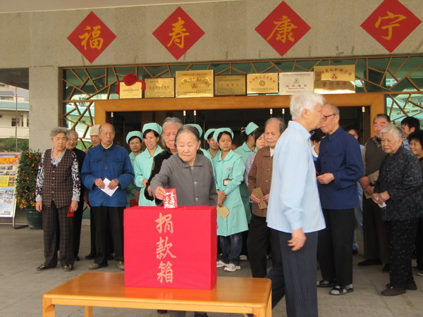 老人们认为,他们平时总是得到社会的关爱,现在是他们回报社会的时候了。“我们无力上前线支援灾区,就让我们尽一点微薄之力吧!”这是生活在广西重阳老年公寓老人们的共同心声!