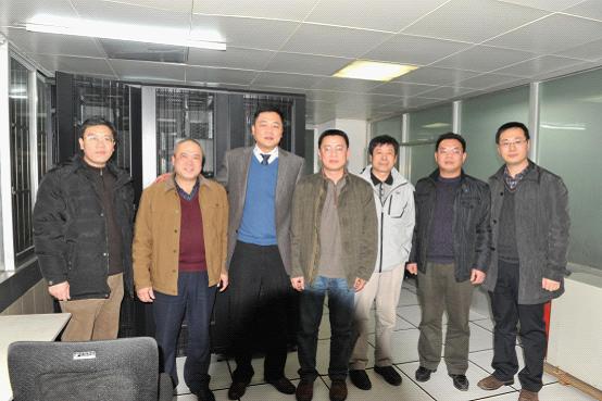 河池市第一人民医院一行与瑞康医院接待人员在机房进行合影