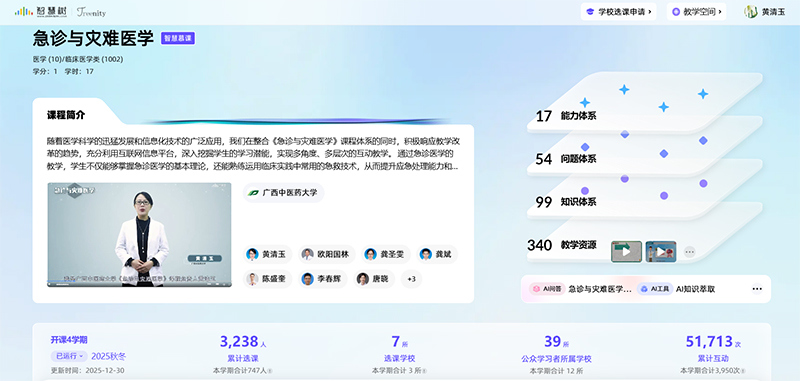 作为一门聚焦急危重症救治的核心课程,《急诊与灾难医学》始终立足临床实践需求,坚守 “时效至上・生命第一” 的教育理念,将价值引领与知识传授、能力培养深度融合。课程团队深耕教学一线十余年,始终以学习者为中心,不断探索教学创新路径。依托智慧树平台搭建线上线下联动的教学体系,借助人工智能技术打造个性化学习生态,通过虚实结合的实践教学模式,有效破解教学中的重点难点问题,让学生在沉浸式学习中锤炼专业技能、塑造职业精神。
