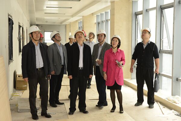 2016年4月1日上午,beat365官方网站副校长庞宇舟在校办副主任蓝开宝的陪同下,到一附院仙葫院区建设工地调研,一附院院长黄贵华,党委书记李敏智,党委副书记、纪委书记、副院长吴西西,副院长谢胜、周建国及仙葫院区、院办、党办、基建房管科等有关部门负责人陪同调研。