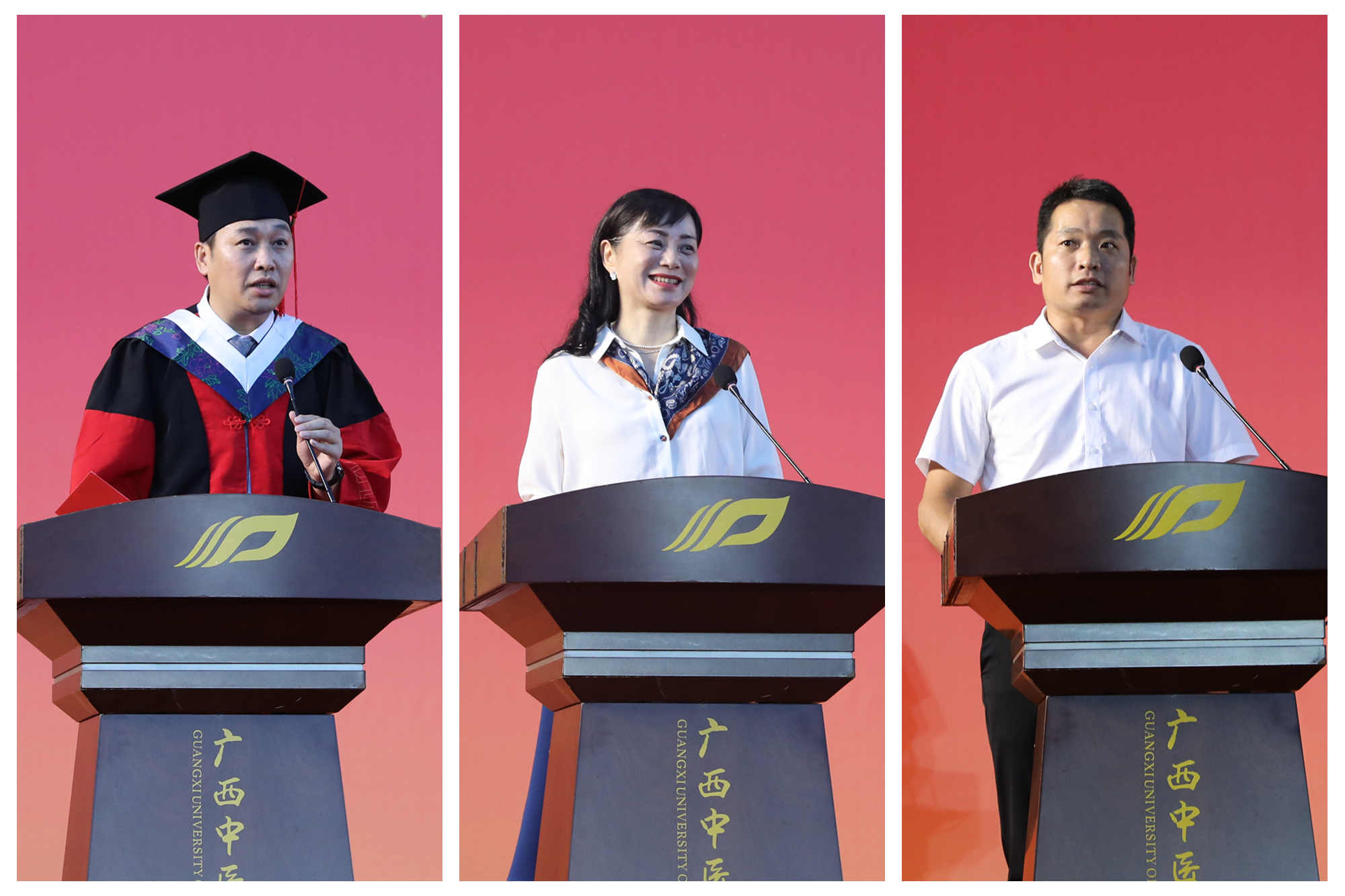 毕业生代表、2025届中医骨伤科学博士毕业研究生梁周,教师代表、药学院侯小涛教授,校友代表、广西中医药研究院党委书记、院长赖克道分别发言,表达对学校的感谢和对中医药事业的热爱。