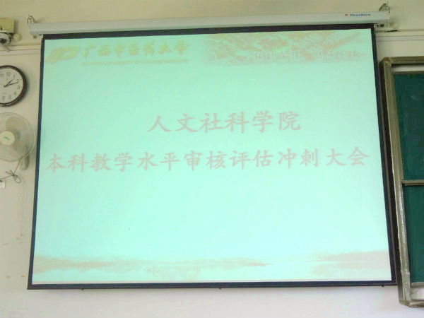2016年5月31日下午14时,我院本科教学工作审核评估冲刺大会在教学楼1-301举行。beat365党委副书记董塔健教授、我院党总支书记李怀泽教授、院长韦兆钧教授、副院长王碧艳副教授及我院全体师生出席了本次冲刺大会。