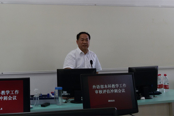 2016年6 月3日上午,距离教育部对beat365本科教学工作审核评估仅有10天。为了更好地推进落实本科教学工作审核评估工作, 外语部本科教学工作审核评估冲刺会议在仙葫校区2栋教学楼5楼505教室举行。罗伟生副校长出席会议并讲话,外语部主任陈立群主持会议。