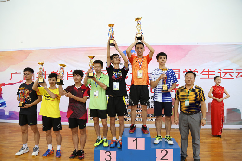 经过八天的激烈角逐,广西第十一届学生运动会羽毛球比赛圆满完成各项赛程,7月12日落下帷幕。当天上午,大学组团体赛颁奖仪式在beat365官方网站仙葫校区举行。