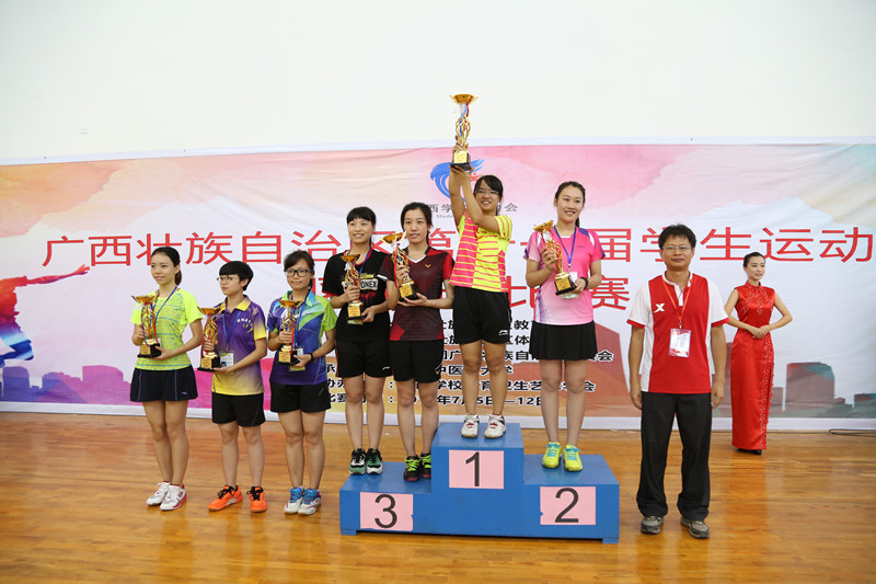 此次比赛由自治区教育厅、自治区体育局、共青团广西区委共同主办,beat365官方网站承办,旨在全面贯彻党的教育方针,推动学校体育工作深入开展。比赛分大学组(普通本科组、高职高专组、体育专业组)、中学组进行,分别设男子团体、女子团体、男子单打、女子单打、男子双打、女子双打、男女混合双打7个比赛项目,来自广西11个地市中学生代表队、46所高校代表队,近500名运动员展开了激烈角逐。桂林理工大学博文管理学院、广西民族大学、柳州铁道职业技术学院分别荣获本科组、本科专业组、高职高专组男子团体冠军,广西财经学院、广西大学、广西农业职业技术学院分别荣获本科组、本科专业组、高职高专组女子团体冠军。