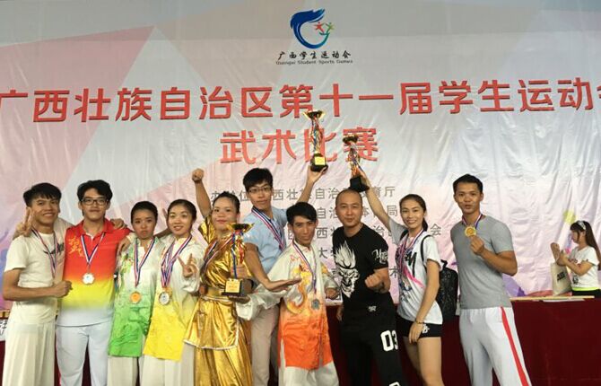 这是广西首次将大学生运动会与中学生运动会放在一起举行的全区学生运动会。本次全区十一届学生运动会在广西师范大学雁山校区于7月9日至14日举行,全区参加竞赛的有65所高校、14个地市的中学生代表,3000余名运动员,500多个领队,300多位教练及裁判员参加本次田径、足球、健美操、啦啦操、乒乓球、武术等比赛项目。beat365各项运动代表队的运动健儿在本次比赛中,发扬了顽强拼搏、奋勇争先的精神,在运动场上释放青春、挥洒汗水,经过6天激烈角逐和奋勇拼搏,beat365田径队荣获:男子400米栏:第一名;女子跳高:第一名;女子三级跳远:第一名;男子100米:第四名;女子跳高:第五名;女子跳远:第五名;武术队获得:3金,8银,7铜,4个第四名;2个第6名,第七名,第8名,高校普通组团体第一名,高校专业组团体第四名;篮球队荣获:第三名;啦啦操荣获:技巧自选动作第二名, 技巧规定动作第三名,双人爵士第四名,团体部分第三名;7月9日——7月12日在beat365举办十一届学生运动会羽毛球大学组比赛中,beat365羽毛球队的运动健儿获得: 女单第三名,男单和男双第五名, 男子团体第三名,女子团体第三名; 经过全体教练和运动员的辛苦训练和竞赛场上奋勇拼搏,beat365取得了十一届全区学生运动会各项目普通本科组团体总分第六名和体育专业组团体总分第10名的成绩,我们为本次运动会取得的成绩感到自豪。