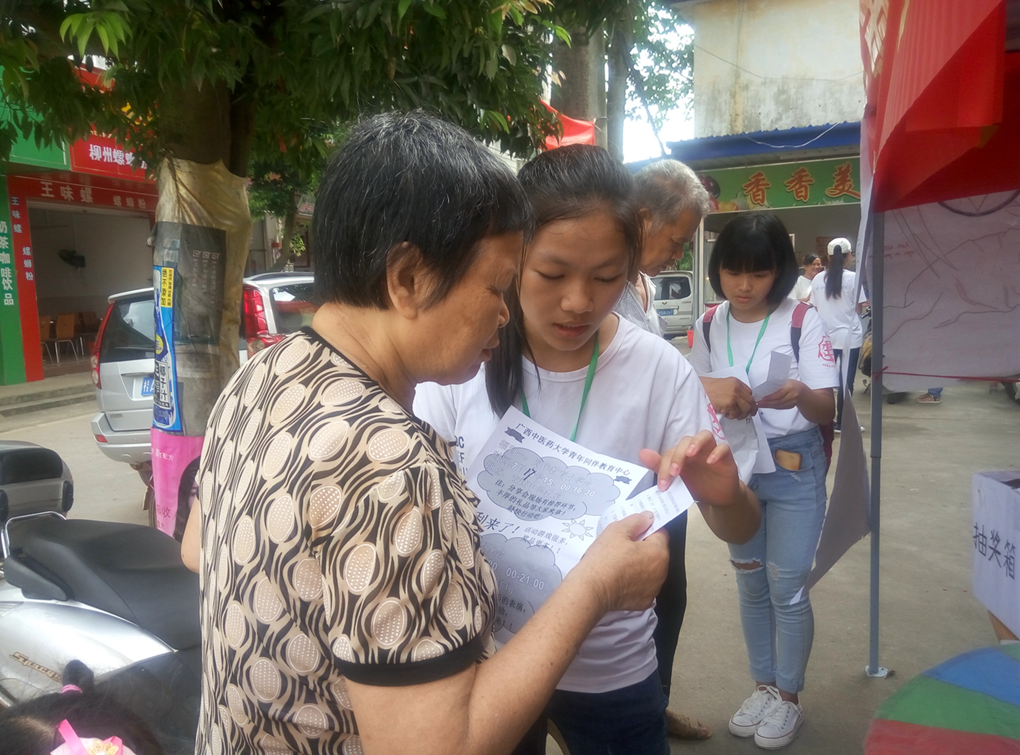 2016年7月21日至23日,“青马”大学生骨干精英队(2016年全国大中专学生志愿者暑期文化科技卫生“三下乡”社会实践重点团队)一行60人到广西贵港市港北区中里乡开展大学生暑期文化科技卫生“三下乡”社会实践活动,活动以“青春建功十三五,携手共筑中国梦”为主题,开展义诊、文艺下乡、关爱留守儿童和急救知识进乡村等活动,7月22日上午,志愿者们到达中里乡龙山圩开展义诊活动,专家们为乡亲看诊开药、志愿者们为乡民们普及急救知识、量血压和推拿按摩。当天下午,部分志愿者来到龙山村初级中学开展“关怀留守儿童”活动,给30名留守儿童送去了书包和文具,并和他们一起玩游戏,度过了一段愉快的时光。当天晚上,志愿者们在龙山圩的中心舞台进行了一场精彩纷呈的文艺晚会,赢得了乡民们的阵阵喝彩。7月23日上午,专家和志愿者们又赶赴中里乡中里圩进行第二轮爱心义诊。