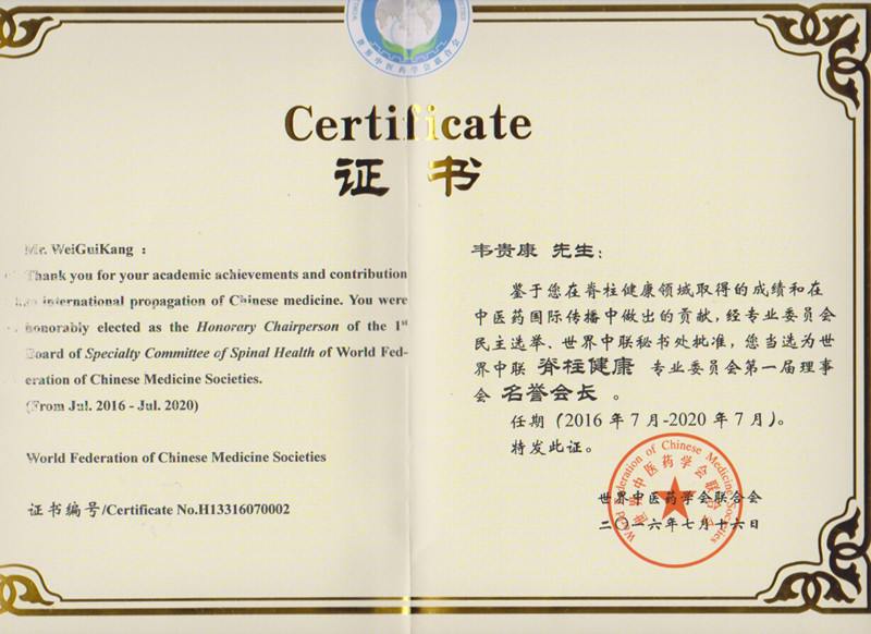 beat365专家在世界中医药联合会脊柱健康专业委员会成立大会上获得殊荣
