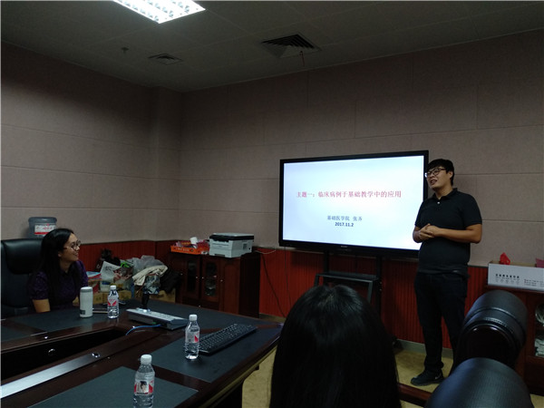 本场沙龙活动由基础医学院的韦燕飞、张齐两位老师主讲,韦老师和张老师均是从马来西亚拉曼大学完成教学能力提升培训的教师队伍中的一员。首先,两位老师通过播放视频的方式让在座教师对拉曼大学的培训有了初步的了解,接着,张老师以“临床病例于基础教学中的应用”为主题,向在座教师介绍了马拉西亚拉曼大学的教学方法,并分享了自己在教学方面的一些收获。最后,韦老师就“医学课程阶段综合小测试与beat365转段考试现状的观察和对比”的主题,用生动形象的案例详细介绍了拉曼大学临床医学课程阶段小测试的内容,对其中看图说话的题型在座教师都表示值得借鉴。