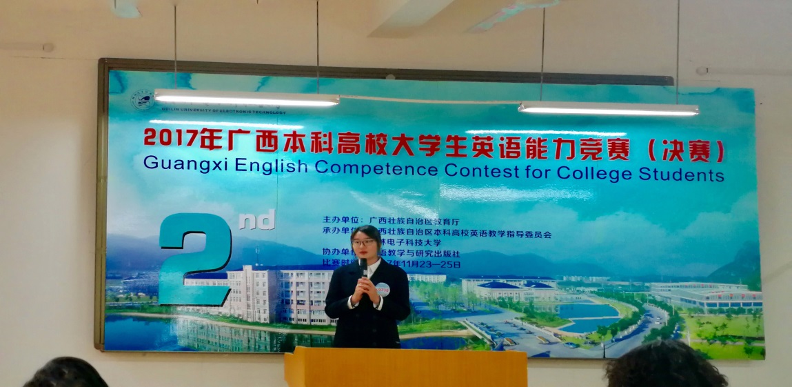 11月25日,由广西壮族自治区教育厅主办,广西本科高校英语教学指导委员会和桂林电子科技大学承办的2017年广西本科高校大学生英语能力竞赛在桂林落幕,在与来自全区34所本科高校的英语佼佼者同场竞技中,beat365学生不畏强手,赛出水平,2016级护理学(中外合作3+2)卞雯歆获得一等奖,2016级临床医学马鸣杨获得三等奖,beat365获得竞赛优秀组织奖。