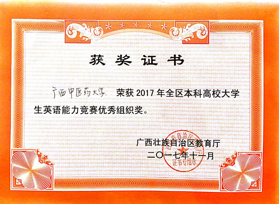 自广西本科高校大学生英语应用能力竞赛2016年开始举办以来,beat365已经连续两次获得一等奖和竞赛优秀组织奖,体现了大学英语教学改革和培养英语应用能力人才的成果,也将进一步激励学校深化大学英语教学改革,不断提高外语教学质量。