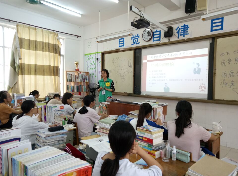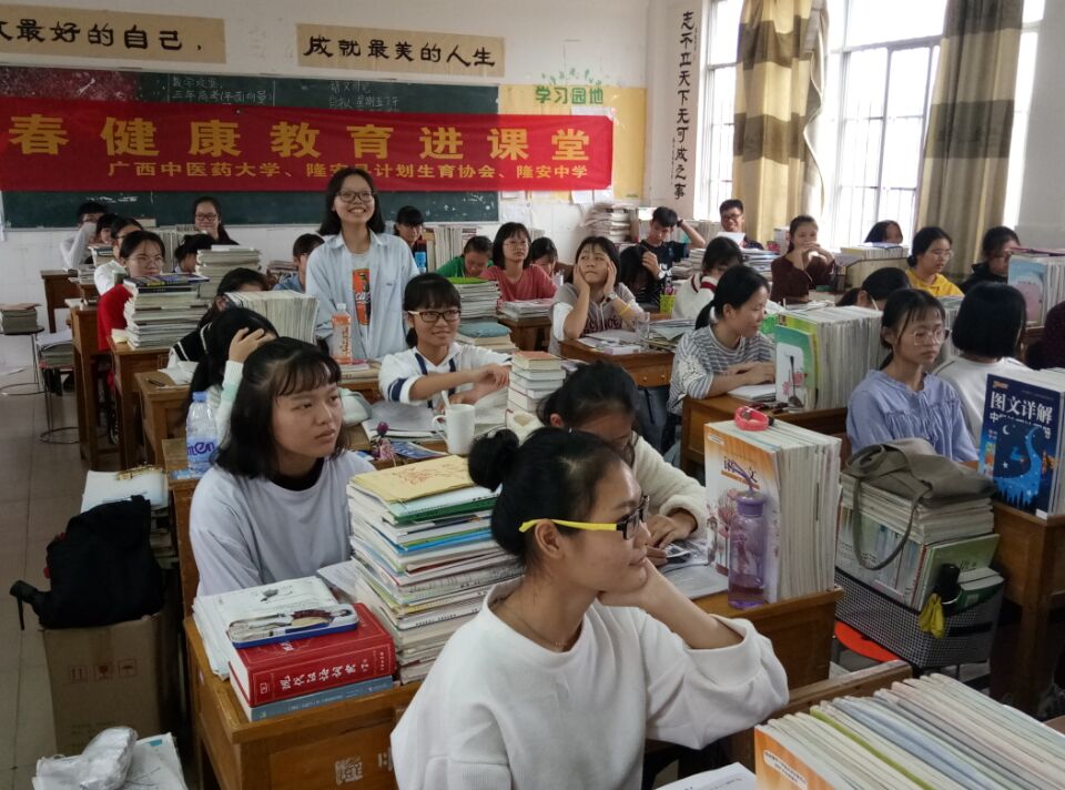 为促进中小学生青春健康教育工作的发展,探索建立大学生志愿者参与青少年青春健康教育的服务机制,2017年10月26日,beat365官方网站青年同伴教育中心41名志愿者来到南宁市隆安县隆安中学开展“青春健康教育进课堂”活动,志愿者深入到高一高二年级各班,开展青春健康教育,并取得圆满成功。