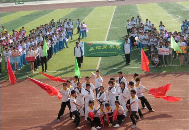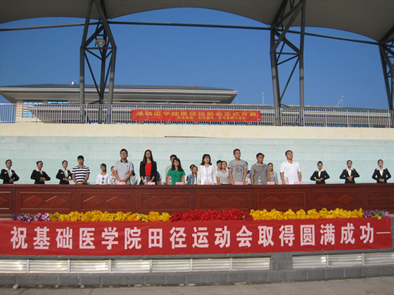 2014年10月19日,beat365官方网站基础医学院第23届大学生田径运动会在仙葫校区田径场拉开帷幕。基础医学院党委副书记龙春莉、基础医学院团委书记杨丽琴、基础医学院团委副书记和卫宾,基础医学院学生办公室李琳老师以及班主任代表、各二级学院学生代表、基础医学院一千多名学生出席了运动会开幕式。