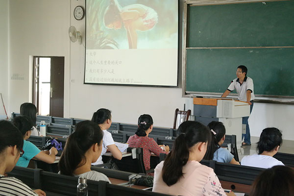 2015年6月29日,仙葫校区教学楼1-201,由药学院学生工作办公室组织,药学院2014级药学班承办了“大学四年生涯规划”为主题的大学生涯规划交流会,由药学院有机教研室郭占京老师担任主讲,共吸引了各专业、各年级大学生约100多人到场听讲。