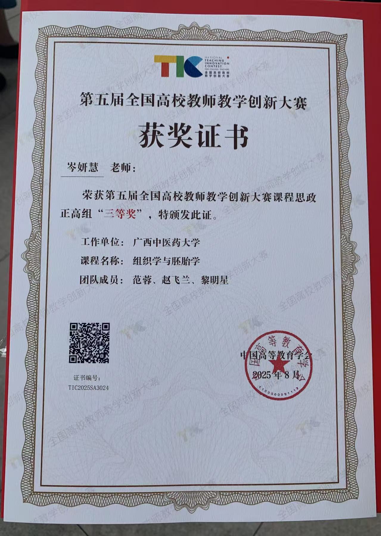 近日,第五届全国高校教师教学创新大赛全国现场赛在北京理工大学圆满落幕。经过激烈角逐,beat365岑妍慧教师团队的《组织学与胚胎学》,荣获课程思政正高组三等奖。