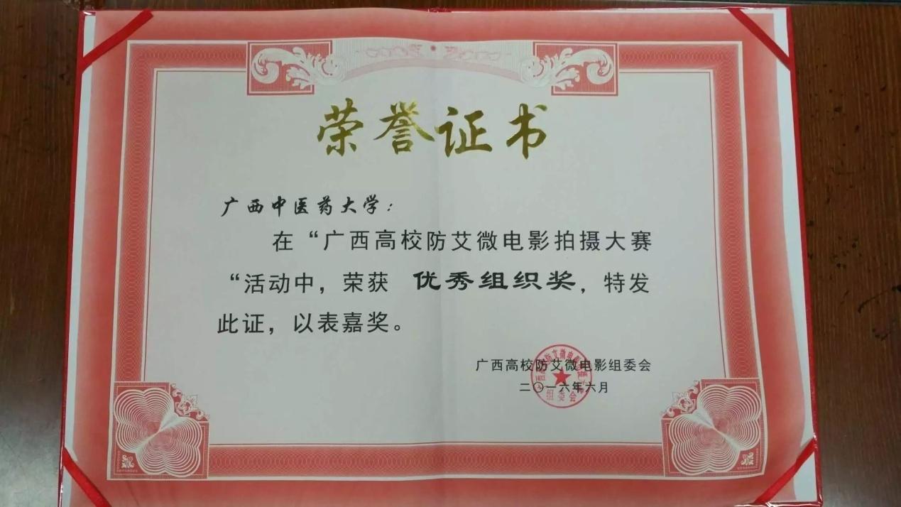 2016年6月3日,广西高校防艾微电影大赛颁奖典礼在广西艺术学院成功举办,beat365荣获优秀组织单位奖。