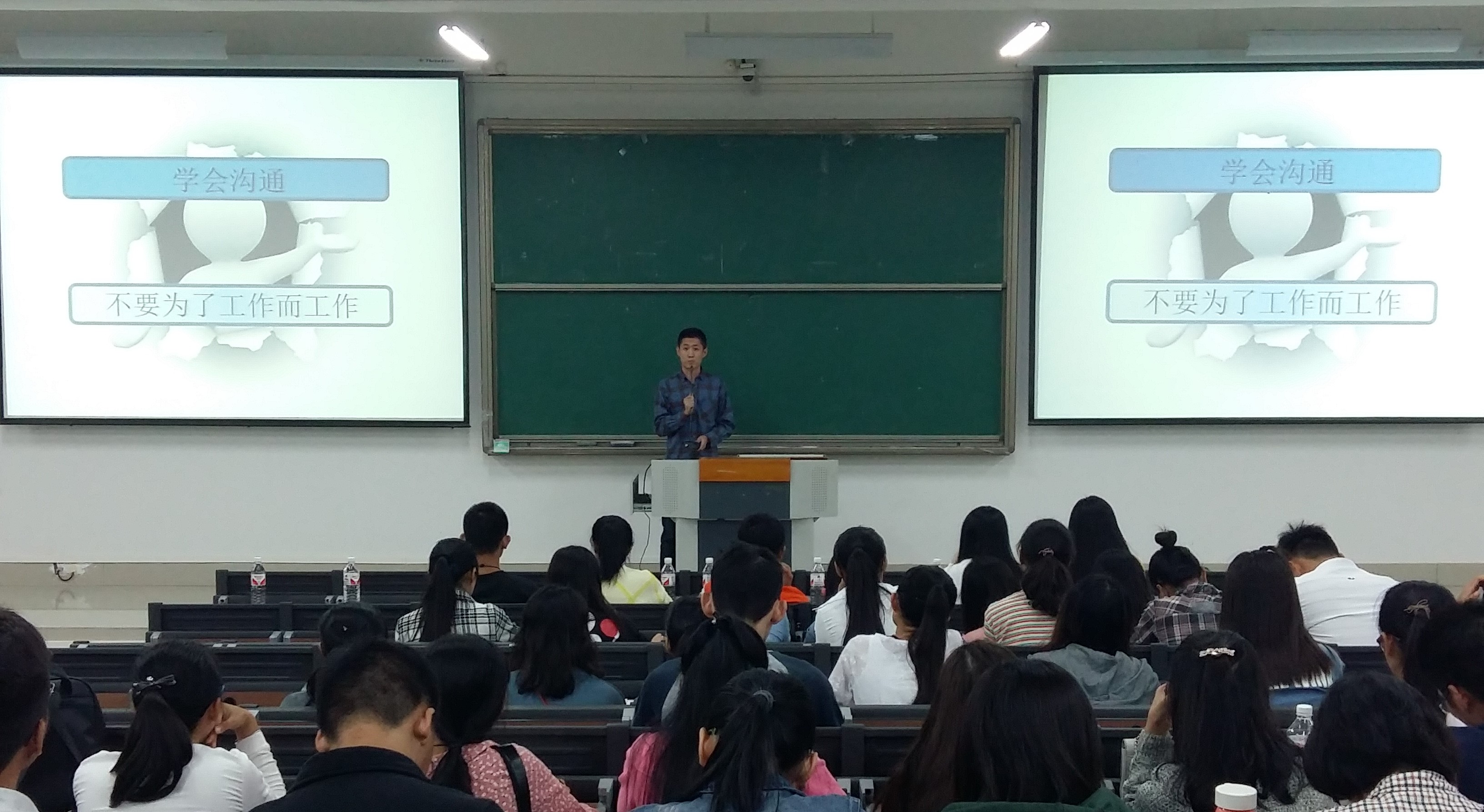 10月29日同一时间,大学生骨干培训班之社团管理分场活动也在beat365官方网站仙葫校区召开,此次团干培训社团管理分场活动主要以社团优秀负责人分享交流为主,其中,社联主席杨鹏飞指出:沟通是人与人之间亲近的桥梁,沟通对我们的日常工作具有重大意义,我们不能为了工作而工作,更应该投入感情去为社团服务,超越自己。最后活动在社联副主席戴玉豪学长的总结中结束。