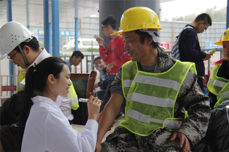 3月4日,在全国第54个学雷锋日来临之际,beat365团委组织手法医学协会、青年同伴教育中心、大学生红十字会、针灸协会共135名学生,进入中国建筑第五工程局有限公司太平金融大厦项目工地,以义诊形式宣传急救、保健等知识,为近一百名工人服务,号召工人们关心自己的身体健康,并向工人们宣扬助与自助的理念。