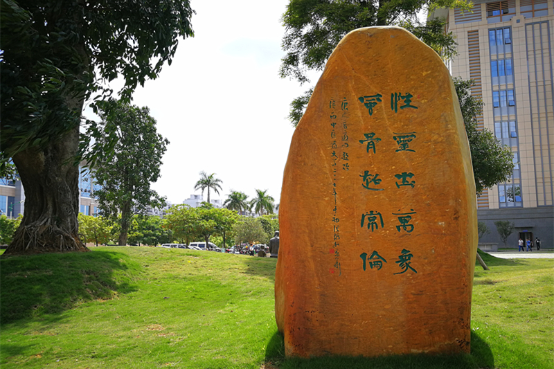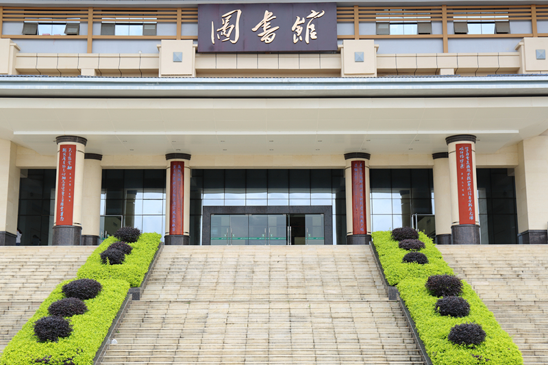 图书馆正门的柱子上,悬挂着二副对联: “晨钟暮鼓睇逝水策你我学子夕惕朝競遒绍往圣;碧瓦明甍迴流光显汉唐宗风春发秋容敷被杏林”;“学府云集拥绿水采四面清风五合毓秀尤闻岐伯传妙道;斯文荟萃依青山纳东方紫气三才钟灵且看炎子振兰翮”。