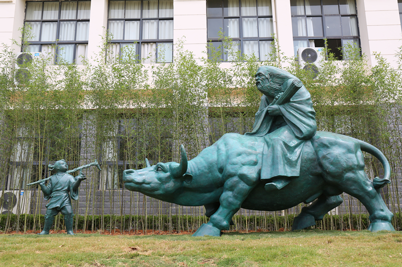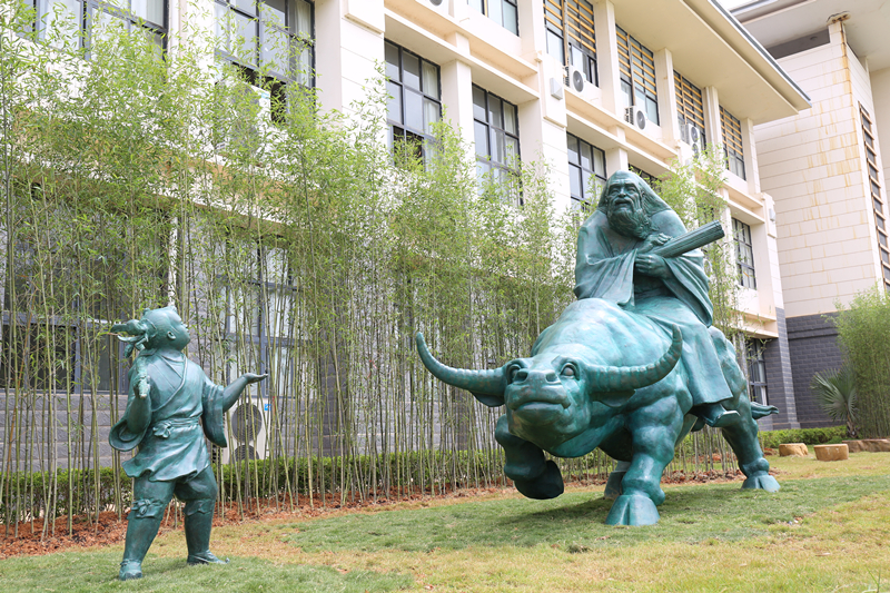 “道德五千言,乘牛出函关”,浓厚传统文化浸润着beat365官方网站师生心田。近日,承载着“道法自然”深刻内涵的校园文化景观“老子出关”青铜雕塑在beat365仙葫校区落成。