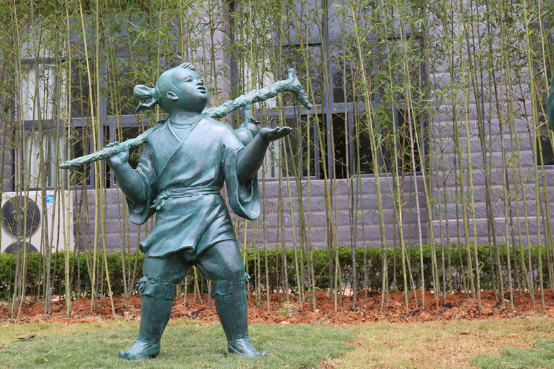 一老一少,惟妙惟肖、古朴隽朗,舒然淡然,超凡脱俗!且与雕塑旁的“玄同”石刻和谐统一,互相呼应。“玄同”语出《道德经》:“和其光,同其尘,是谓玄同。”即和光同尘之意,具天人合一之蕴。