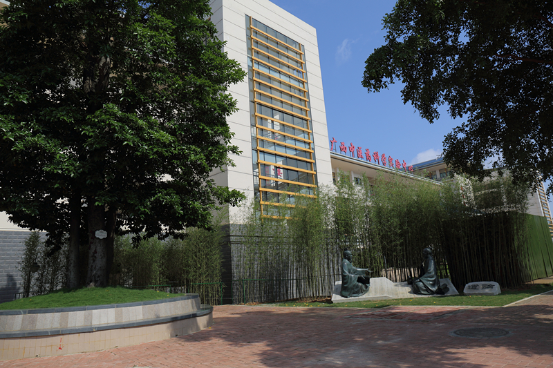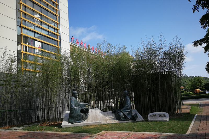 青铜组雕“论道”位于仙葫校区格物路与玉兰路十字路口的西北侧广西中医药科学实验中心旁,由我国著名雕塑家、广西美协主席石向东教授及其团队设计制作。