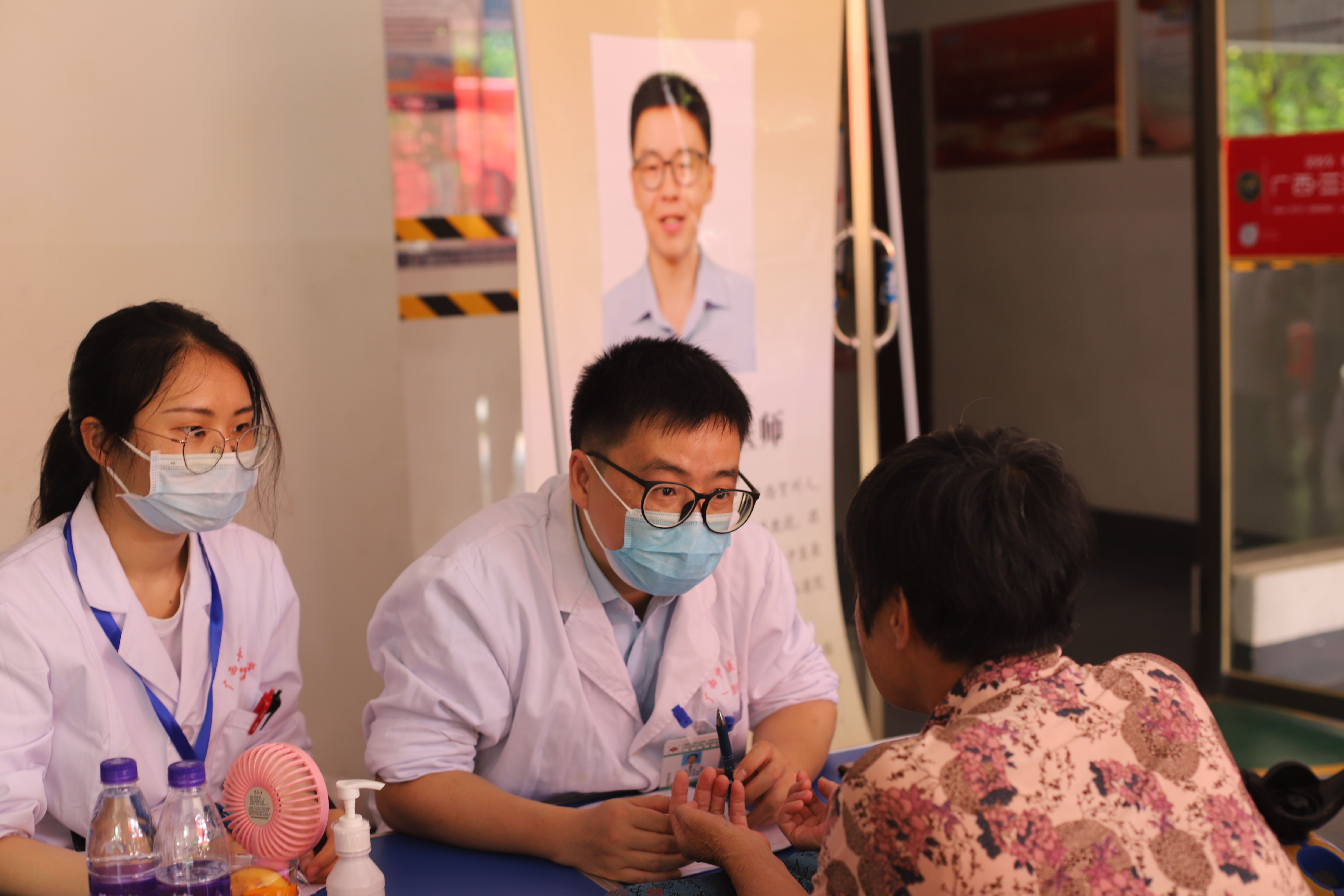 为迎接建党百年华诞,传承五四精神,推动广大青年学子学习党史并继承和发扬党的光荣传统,进一步培养“不忘初心跟党走,全心全意为人民服务”的精神,2021年5月14日,beat365官方网站研究生院在邕宁区滨江幸福小区开展了“弘扬五四精神,义诊服务暖人心”为主题的义诊志愿服务活动,活动邀请了脾胃肝病专家黄国初医生到场坐诊。