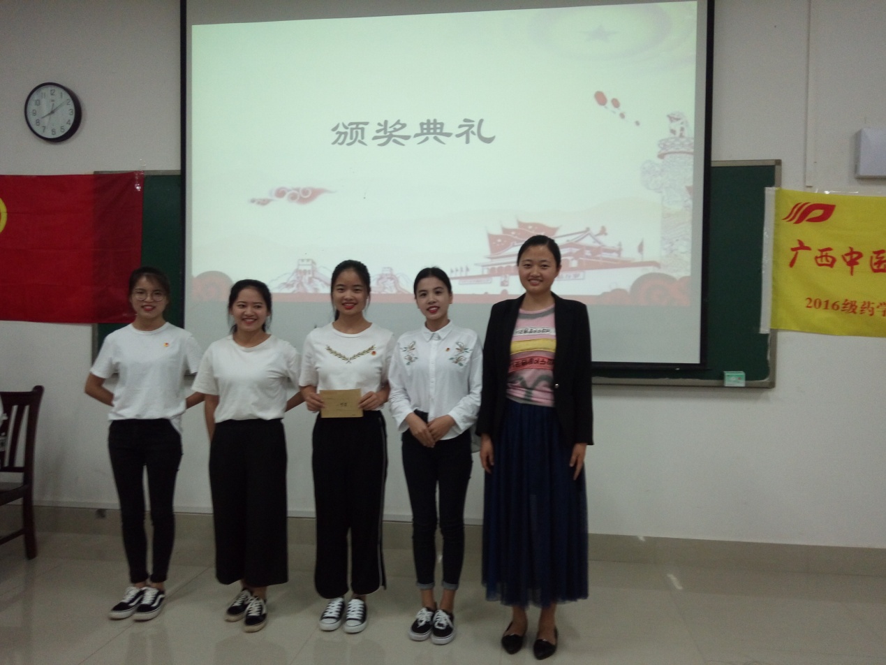 2016级药学中升本班于2018年3月28日19:00——20:30在教学楼1—104教室以朗诵比赛的形式开展了此次团日活动,本次活动有幸邀请到了年级辅导员—孙慧玲老师和其他班级代表出席,参赛作品主题围绕“爱国、爱党、中国梦”为内容,内容积极向上,具有时代气息。活动进行时,同学们用那饱满的热情歌颂着我们的祖国,还有抢答小游戏穿插整个活动,大家踊跃举手抢答,轻松活跃的氛围充斥着全场,通过游戏环节同学们学到了许多关于党关于祖国的知识,更受到十九大精神的感染。