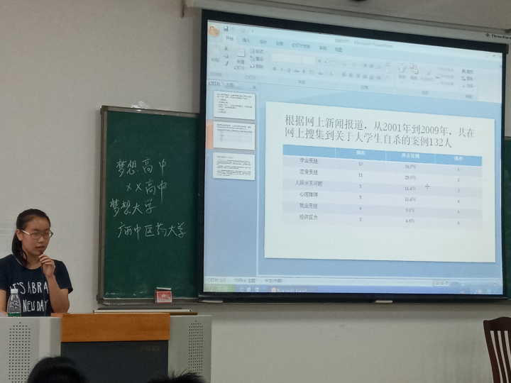 紧接着,心理委演示PPT引导大家积极寻找原因,学会自救。