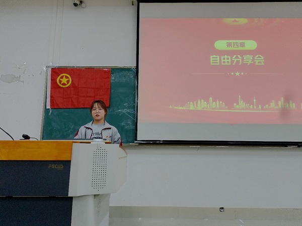 活动伊始,由邵庆宁同学为支部成员们带来五四知识小讲堂,同学们对五四精神以及中国共产主义青年团有了进一步的了解和认识。团支部成员们还一同观看了献礼百年团建主题视频,回顾中国共产主义青年团的百年历程,学习并领悟习近平总书记对青年的殷殷寄语。活动中还设置了自由分享环节,同学们分享了自己的感受及收获。最后由团支书石小秀同学总结本次团日活动的意义,并呼吁同学们汲取奋进力量,以实际行动践行五四精神。