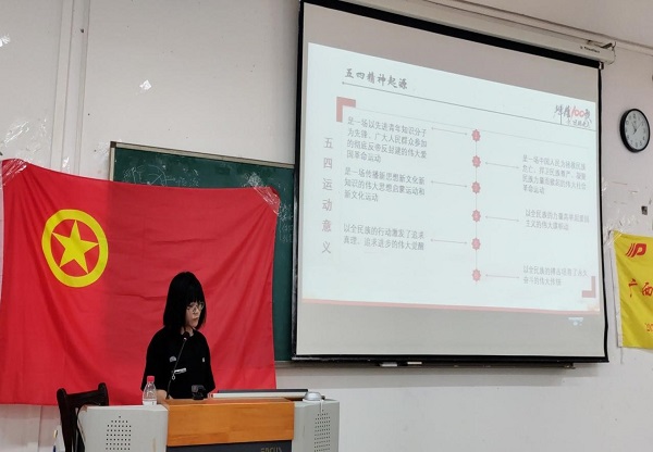 活动伊始,团支书通过知识竞赛引出五四的背景,以及话题讨论深入浅出地讲解其意义所在,同时联系当今时代分析五四精神新的时代内涵,学习习近平主席在庆祝中国共青团成立100周年大会讲话上的重要讲话精神。活动中,在观看红色影片觉醒年代后,同学们深受鼓舞,积极争当青春主讲人,担当时代使命,做新时代的继承人,并由团支书带领同学们重温入团仪式。最后,辅导员孙慧玲老师为本次活动进行了总结,同时也呼吁同学们践行初心,不忘时代使命,不负人民。