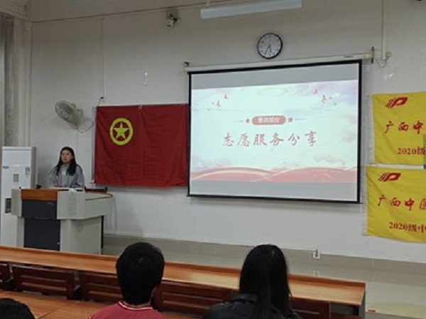 本次活动由心理委员覃艳青主持。活动分为四个部分,一是覃艳青同学带领同学们学习党的二十大精神,重点温习“五个牢牢把握”;二是学习雷锋精神,同学们还对“雷锋谨慎永不过时”的说法发表自己的理解;三是学习“五个更大”中药要求,这是“四个新”的历史发展,也是开创新时代壮美广西建设新局面的根本遵循;四是志愿服务分享,覃艳青同学就自己大学参加过的志愿服务活动,分享自己的经验与心得。