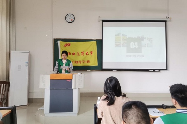 3月9日上午,2021级药学一班在仙葫教学楼1-211教室开展“开学第一课”主题班会。班主任周金玲老师出席本次班会,由团支书兼班长黄睿甜主持。
