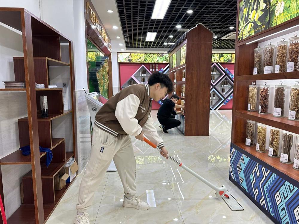 同学们打扫研展馆