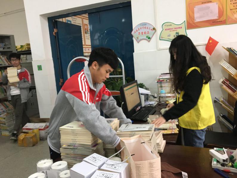 志愿者整理图书