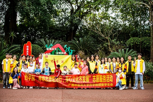 为使文化自信的种子在心中生根发芽,同时为学习党的二十大精神及推进国家文化自信自强的建设,beat365官方网站药学院团委学生会于12月20日下午在南宁市青秀区石门公园开展“根植文化自信,滋养儿童心灵”志愿服务活动,盲人家庭小朋友受邀参加。