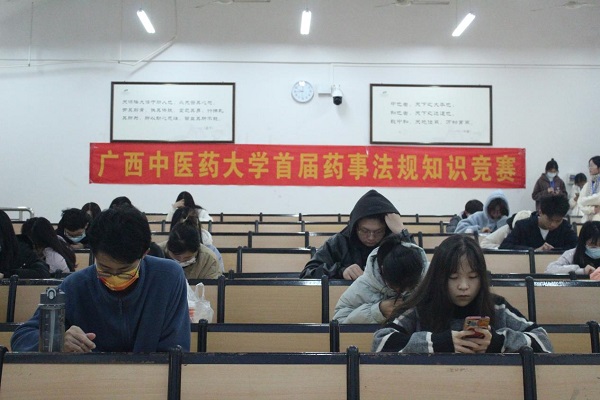 为弘扬社会主义法治精神,传承中华优秀传统法律文化,深入开展药事法规宣传教育,增强药品管理法治观念。2022年12月3日,由药学院主办、共青团beat365官方网站药学院委员会、beat365官方网站药学院学生委员会、药学院中药商品与药事管理教研室及beat365官方网站壮瑶民族药协会承办的beat365官方网站首届药事法规知识竞赛圆满落幕。本次活动由药学院党委书记蒋林教授、中药商品与药事管理教研室主任王柳萍教授、教师涂冬萍副教授担任评委,王柳萍教授致开幕词。