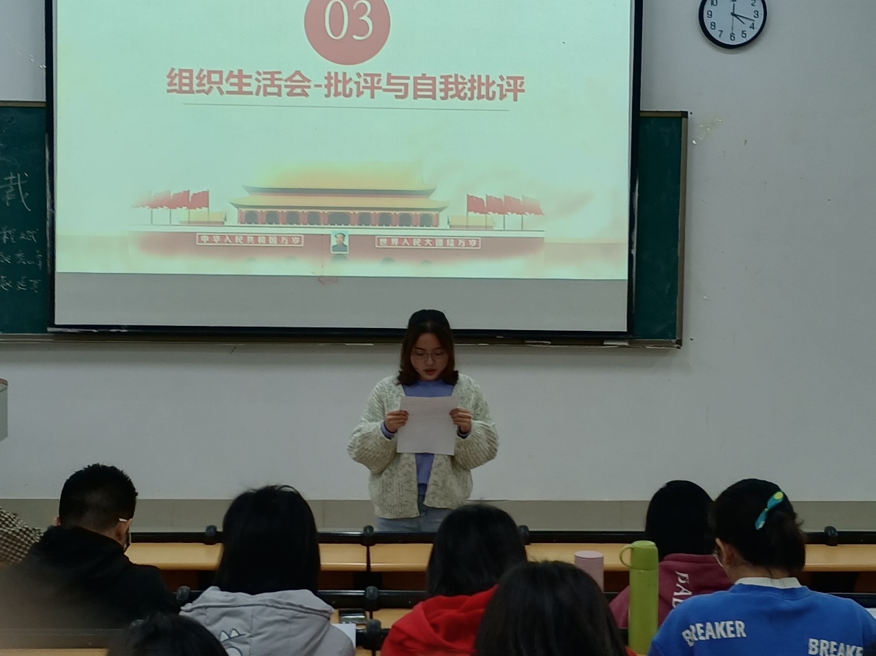 会议第一项,由孙慧玲为全体党员讲授《学党史,迎百年》专题党课,重点学习习近平总书记在党史学习教育动员大会上的讲话精神,希望全体党员通过党史学习,做到明理、崇德、增信、力行,并重点讲解东北抗联第一军总司令杨靖宇烈士的英雄事迹,强调党员要身体力行践行对党忠诚的政治要求。会议第二项,学习传达上级党委相关文件,向全体党员宣读了关于五起违反中央八项规定精神典型问题的通报文件,警戒同志们以反面典型为戒,严把思想关。会议第三项,孙慧玲做述职报告,报告支部2020年工作情况,通报支部存在的问题,随后组织全体党员开展批评与自我批评,支部党员同志从思想、工作、学习、生活等各方面深入反思,勇于直面自身存在的问题,诚恳地指出其他同志存在不足之处,以期共同成长,相互进步。会议第四项,开展民主评议党员,会议共评选出苏嘉福等9名优秀党员,陈超恒等19名合格党员。