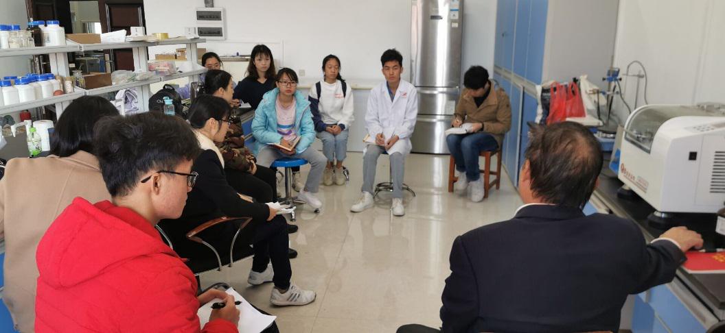 12月6日下午,有机党支部在有机化学实验准备室举行了“不忘初心、牢记使命”——聚焦有机化学学习难题、解决学生学习困惑师生座谈会,以实际行动践行初心和使命,为在校学生办实事好事。组织支部教师党员结合教学存在的实际问题,参加志愿帮扶服务,帮助学生解决学习过程中实在困难,同时促进教学相长,改进教学方法,提高教学水平。支部书记钟益宁、组织委员霍丽妮、纪检委员钟海艺以及党员贾智若、李培源以及18级中药、18级临床、18级制药等专业,近10多位学委和学生代表参加座谈会,座谈会由支部书记钟益宁主持。