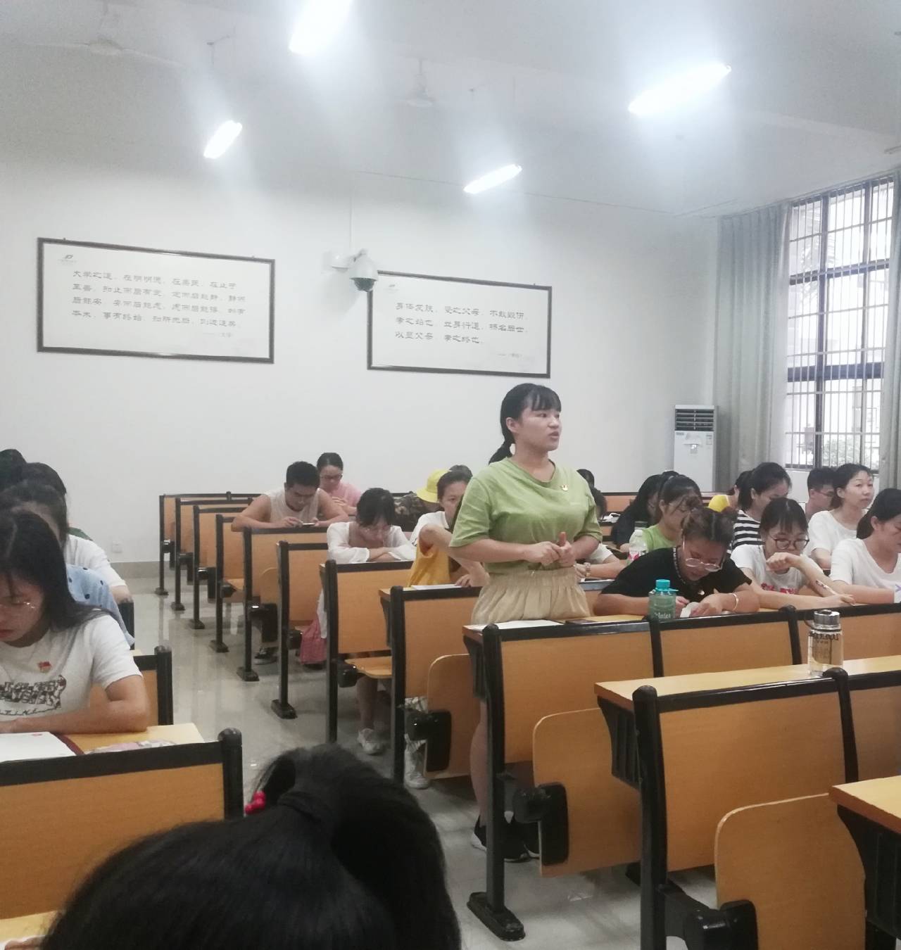 会上,黄鑫老师给我们介绍了黄文秀同志的基本情况,同时我们通过观看视频了解到黄文秀同志北师大硕士毕业,放弃在大城市的工作机会,回到家乡革命老区百色;她选择到贫困村担任第一书记,把双脚扎进泥土,为群众脱贫攻坚殚精竭虑;她忍痛告别重病卧床的父亲,深夜冒雨奔向受灾群众,面对危险坚定前行,不幸遭遇突如其来的山洪,年轻的生命永远定格在扶贫路上……黄文秀在脱贫攻坚第一线倾情投入、奉献自我,用美好青春诠释了共产党人的初心使命,谱写了新时代的青春之歌。