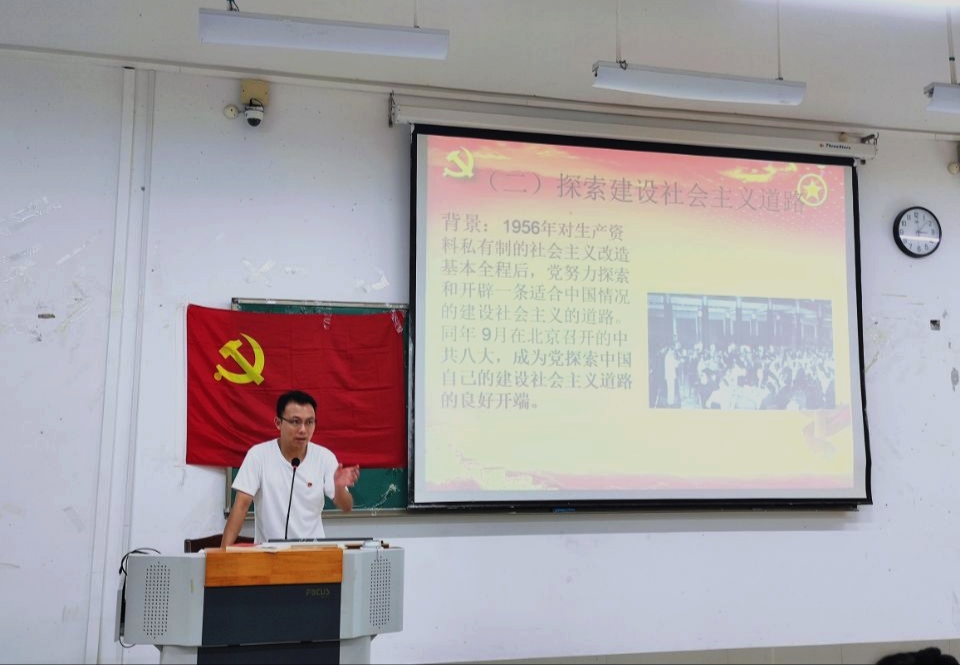 铭记百年党史,砥砺奋进前行。7月2日下午,药学院药学学生第二党支部在仙葫教室2-202组织全体成员学习《中国共产党对社会主义建设道路的探索历程》的专题党课,由支部书记黄鑫同志作领学人,支部共9名党员,9名预备党员,23名入党积极分子参加。